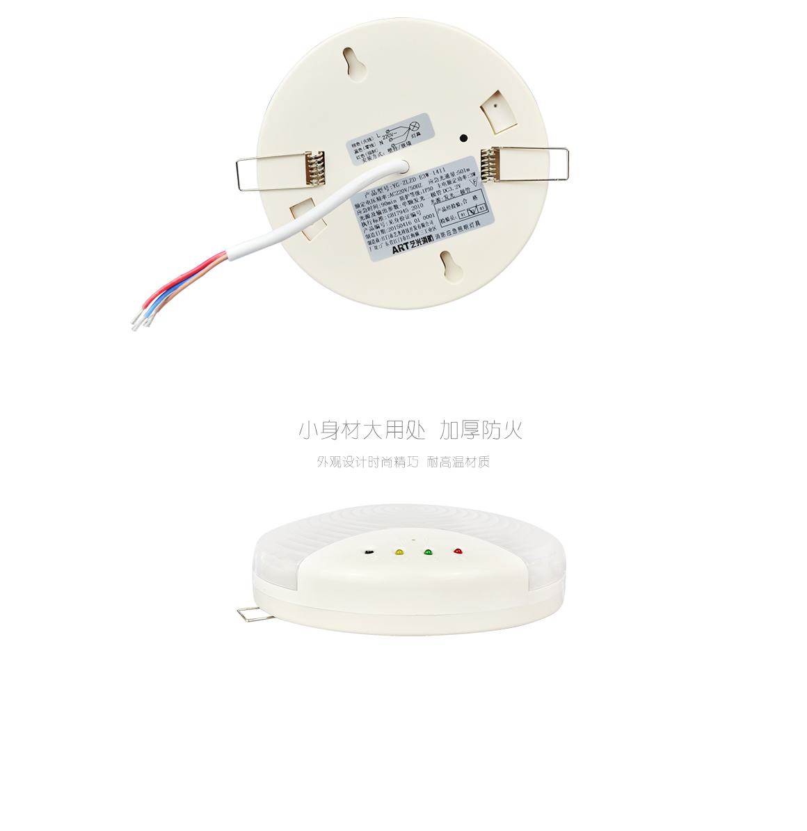 產(chǎn)品型號:YG-ZFZD-E1W-14111光源類型:LED*30應(yīng)急時間:≥90分鐘主電功率:3W安裝方式:開孔Φ94mm 可掛裝、嵌入或吸頂安裝電池類型:鎳鎘AA3.7V防護等級: IP30產(chǎn)品尺寸:Φ139mm H39mm執(zhí)行標準:GB17945-2010新國標