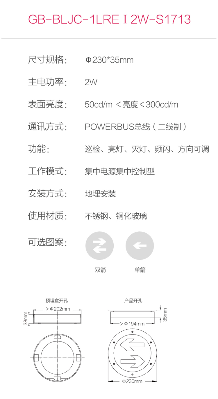產(chǎn)品型號(hào):S1713主電功率:2W安裝方式:地埋安裝防護(hù)等級(jí):IP30產(chǎn)品尺寸:Φ230*35mm