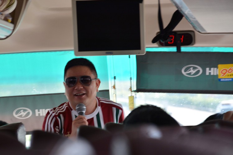 大伙們屁顛屁顛地上了車,導(dǎo)游帥(da)哥(shu)就開(kāi)始搞氣氛,搞小活動(dòng),不過(guò)估計(jì)大家還是太早起床,都沒(méi)怎么搭理,也原諒我沒(méi)怎么拍幾張導(dǎo)游的帥氣照,沒(méi)辦法,性別免疫,就這么算了吧。四個(gè)小時(shí),當(dāng)然少不了我們藝光集團(tuán)總經(jīng)理張開(kāi)振先生的豪情發(fā)言,這次發(fā)言主題我只記得幾個(gè)字,玩得開(kāi)心。
