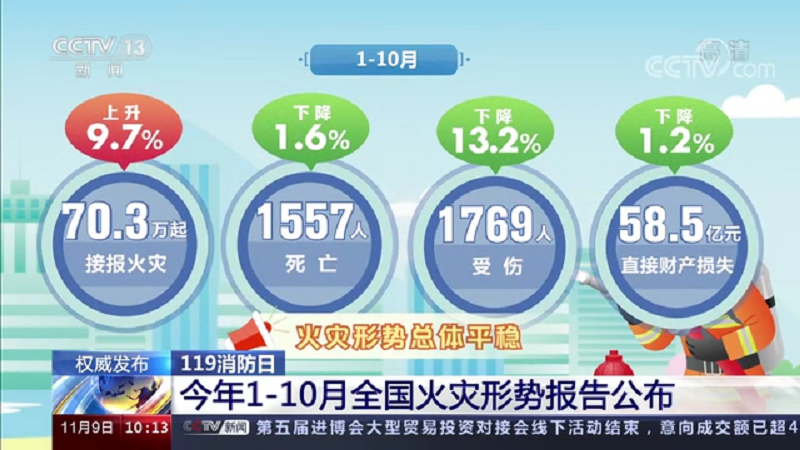 應(yīng)急管理部消防救援局發(fā)布了今年1至10月份全國火災(zāi)形勢報(bào)告,與去年同期相比,今年全國火災(zāi)形勢呈現(xiàn)出“一升三降”的特點(diǎn)。