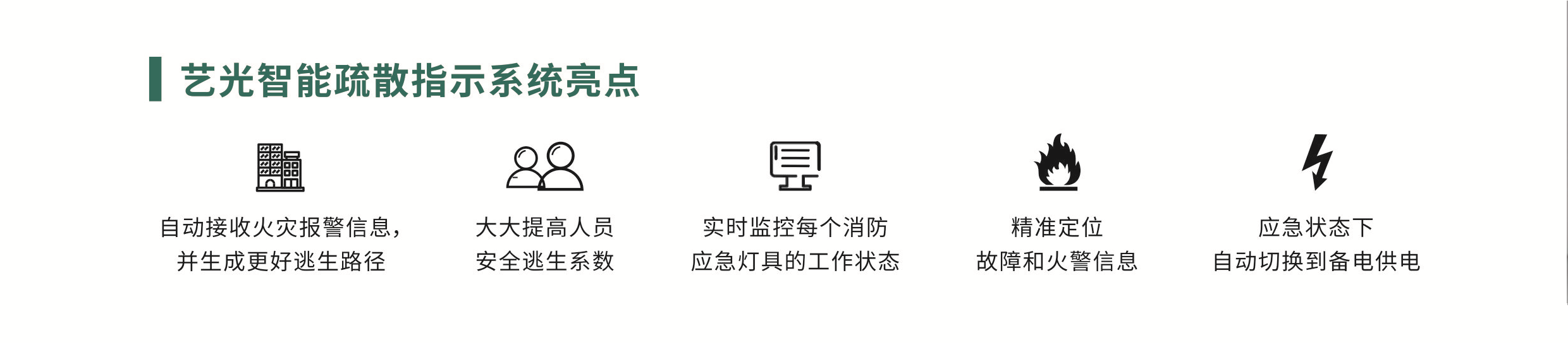 站在應(yīng)急疏散維度,中小學(xué)校、醫(yī)院、大型商業(yè)綜合體還可能存在消防設(shè)備選型不一難管理、用電設(shè)備多難供電、面臨突發(fā)狀況不確定因素多等諸多難題,除了國(guó)家政策的正確引導(dǎo)外,還需要消防企業(yè)的產(chǎn)品硬件支持。作為“全球智能應(yīng)急照明疏散專(zhuān)家”, 藝光消防積極響應(yīng)國(guó)家號(hào)召,不斷調(diào)試升級(jí)智能應(yīng)急照明疏散系統(tǒng),只為最大化提高系統(tǒng)跟場(chǎng)所的適配度,提高緊急疏散能力,保衛(wèi)民眾安全。