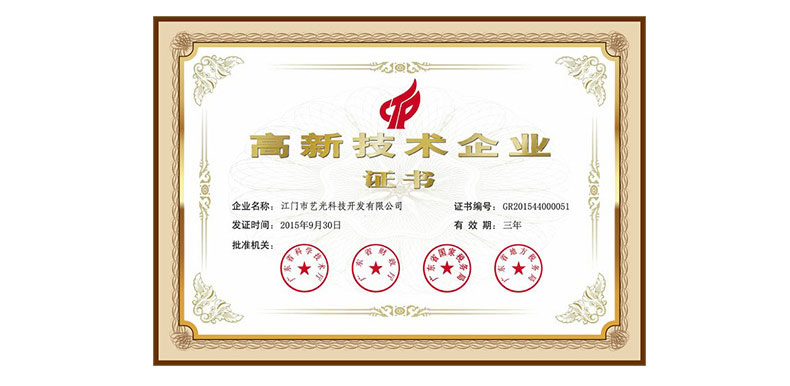 十五年來,藝光科技堅持以客戶為中心,不斷進步,不斷尋求創(chuàng)新突破,現(xiàn)已擁有多項專利,并已成為國家高新技術企業(yè)。