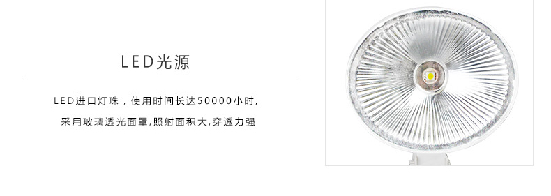 采用進口LED燈珠,使用時間長達50000小時;采用玻璃透光面罩,照射面積大,穿透力強;