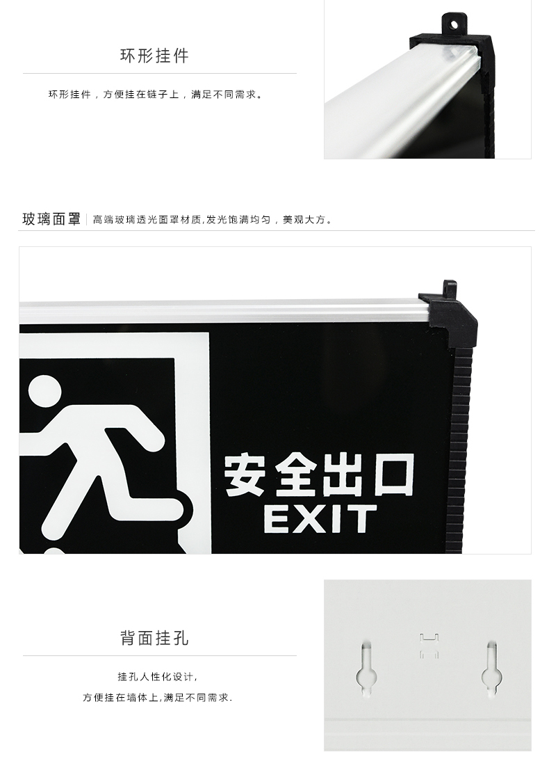 環(huán)形掛件便于掛在鏈子上;背面掛孔便于掛在墻體上;高端玻璃透光面罩,發(fā)光飽滿均勻;