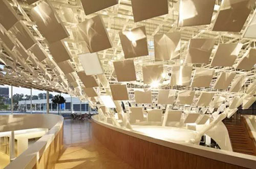 進(jìn)入到新總部后,映入眼簾的即是大型的交互式藝術(shù)裝置,光之樹。