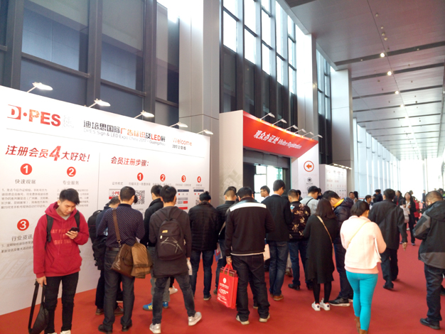 展會辦證大廳處,參展的觀眾絡(luò)繹不絕,大仲馬廣告閃動屏動感燈箱成為擁擠人群中一道亮麗風(fēng)景線,吸引眾多眼球