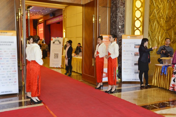門口漂亮的禮儀小姐在寒冷的天氣下依然精神飽滿的迎接來賓