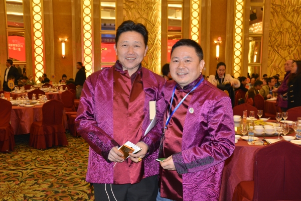 簽名墻留影:藝光科技研發(fā)經(jīng)理李祥(左)  藝光科技董事長(zhǎng)張開振(右)