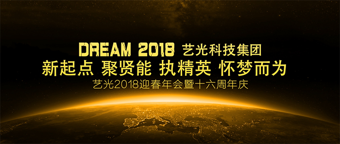 1月24日,藝光科技集團(tuán)2018迎春年會暨十六周年成人禮圓滿召開。本次年會主題是“新起點(diǎn)?聚賢能?執(zhí)精英?懷夢而為”。回首2017,全體藝光人勇于迎接挑戰(zhàn)、攻堅(jiān)克難,使集團(tuán)保持良好的發(fā)展勢頭,在品牌建設(shè)、研發(fā)創(chuàng)新、市場拓展、組織架構(gòu)完善等方面都取得了驕人成績。展望2018,我們必須抓住新的機(jī)遇,聚集更多高精尖人才,繼續(xù)為夢想奮斗,以高度的責(zé)任感和使命感推進(jìn)集團(tuán)的健康、穩(wěn)定、持續(xù)發(fā)展。